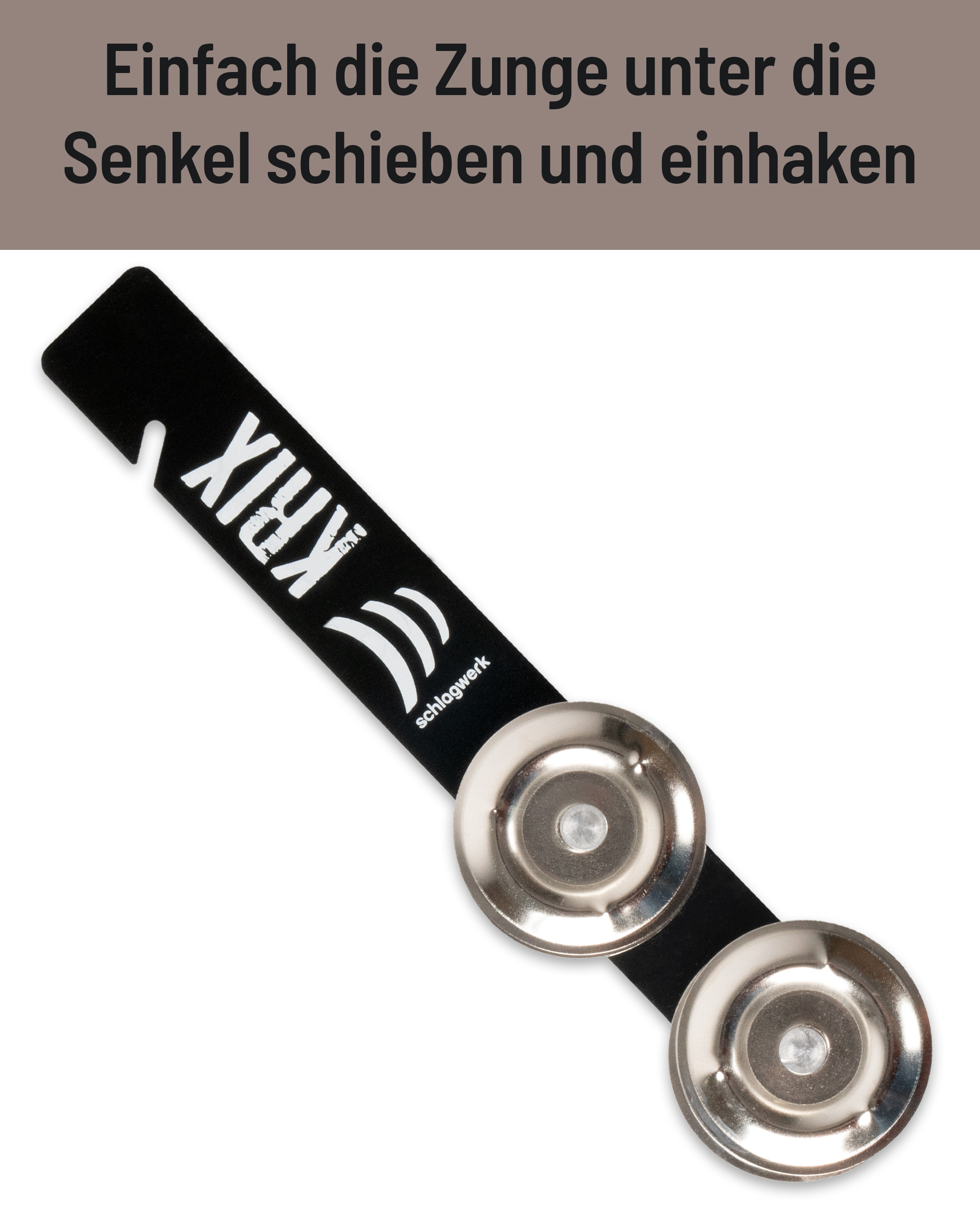 Absolut unglaublich!! Einfach den Krix unter die Schnürsenkel schieben, einhaken und los geht's. Krix ist vermutlich das effektivste und einfachste Percussion-Instrument auf dieser Welt.