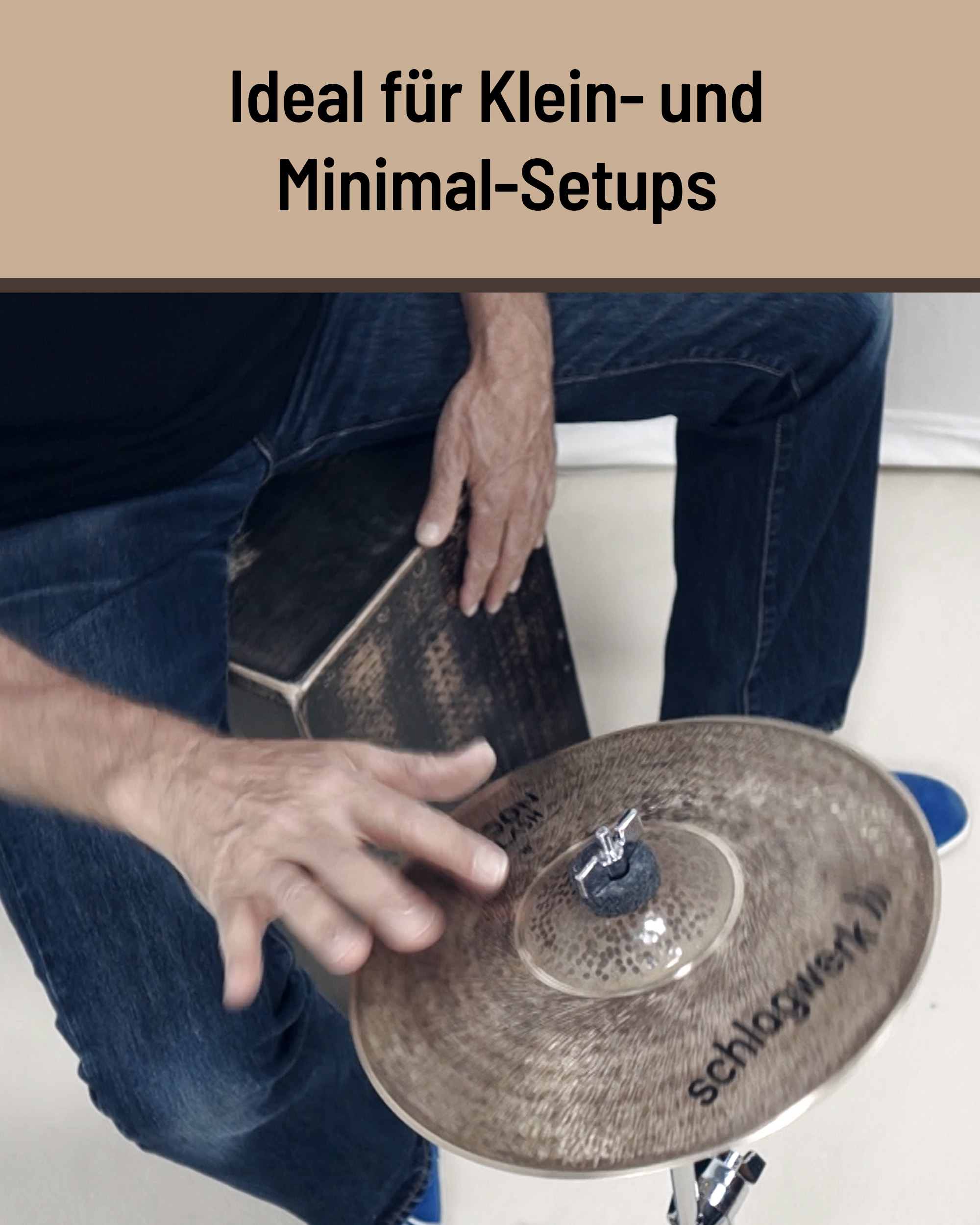 Alleine oder im Set gespielt, ist das Cajon Splash von Schlagwerk die optimale Wahl für den modernen Cajonspieler. Die weichen, handgehämmerten Splashes sind geradezu prädestiniert und ausgelegt fürs Spielen mit der Hand und bieten dank ihres geringen Gewichts und des genialen Querschnitts eine extrem schnelle Ansprache und Soundentfaltung.