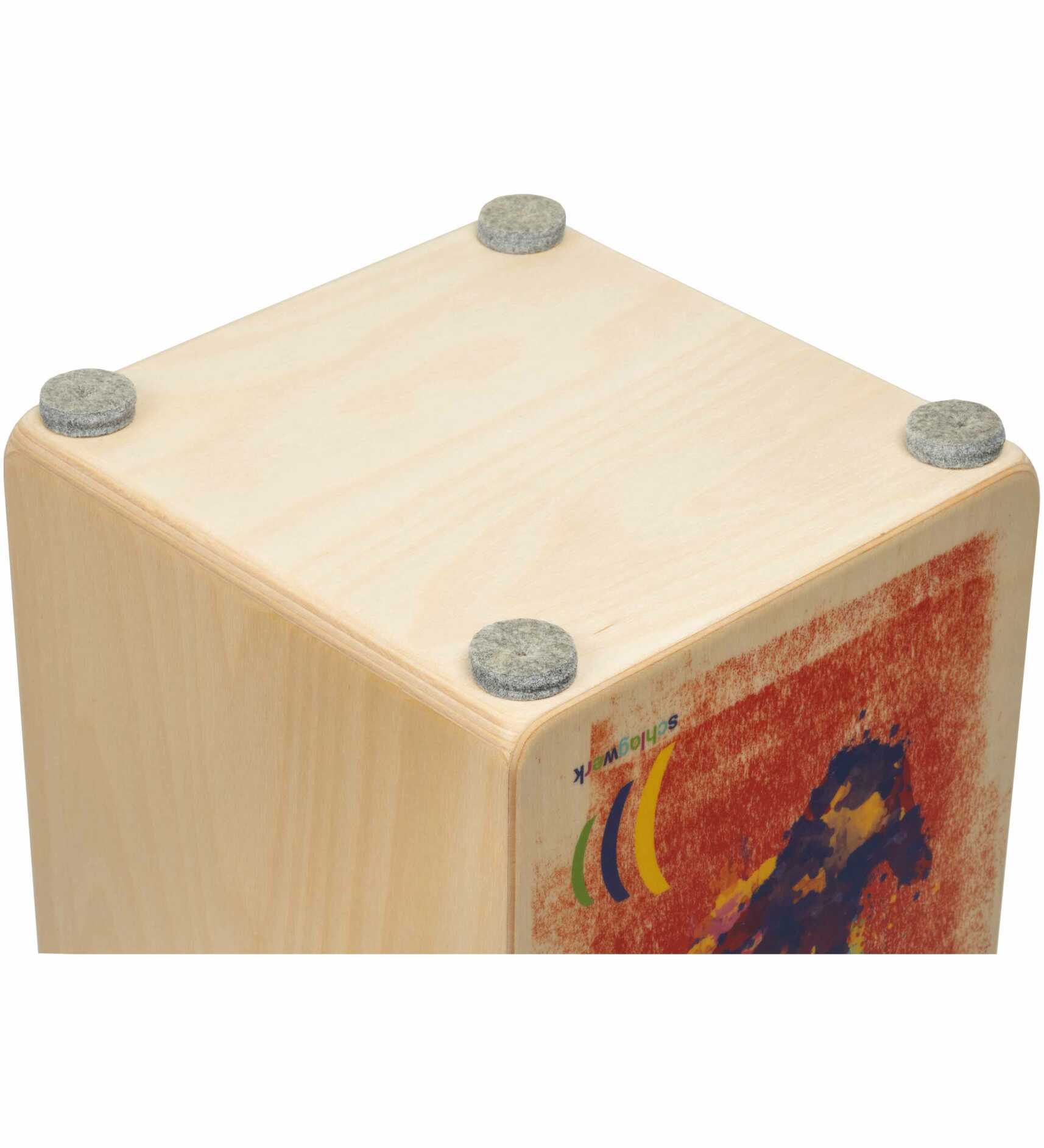Endlich gibt's ein Schlagwerk Cajon für die Stars von Morgen. Mit dem fetzigen High Five Motiv und einem richtigen Cajonsound macht das Spielen sofort Spaß. Die stabile Konstruktion und die robuste Schlagfläche ermöglichen unzählige „groovige' Entdeckungsreisen... Wir verwenden die gleichen Materialien, wie in unseren professionellen Instrumenten. Die Schlagfläche wird jedoch vollverleimt damit nicht im Geringsten Verletzungsgefahr an Schrauben besteht. Alle Kanten und Ecken sind sanft gerundet und fein verschliffen für sorgloses Spiel. Alle Kinder Cajons sind bei uns in Gingen an der Fils handgefertigt für die nächste Generation von Musikern und für das beruhigende Gefühl etwas Gutes für ihr Kind zu tun.